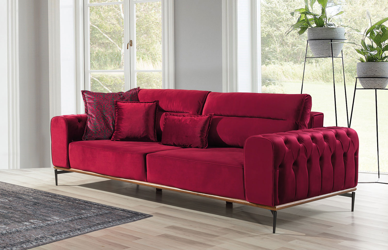 Miami dokulu kumaşı ile sade bir tarzı temsil ediyor.